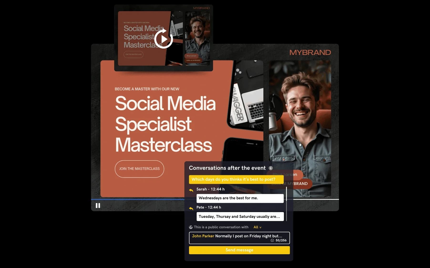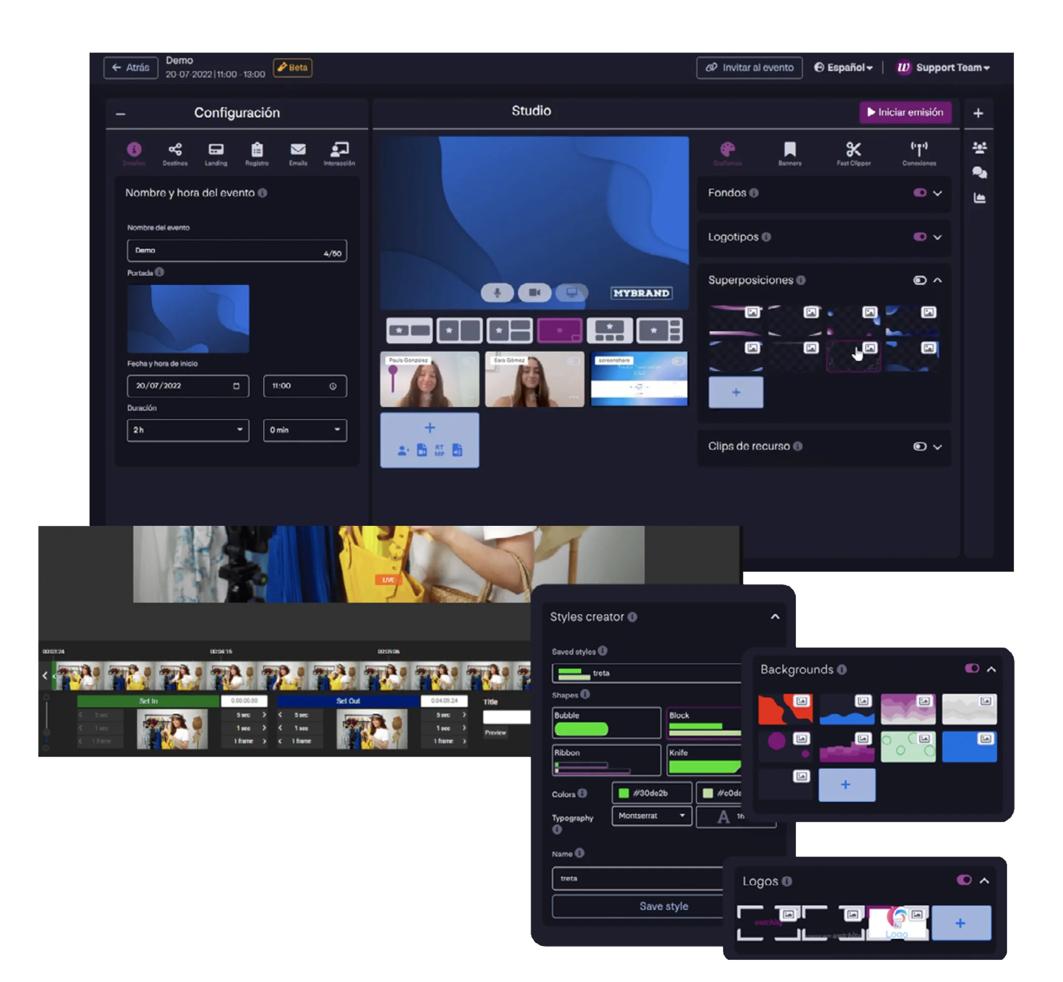 Cloud-based SaaS platform. Live video communication tools for companies and brands, featuring studio production, interactive event landing pages, real-time audience engagement and more.